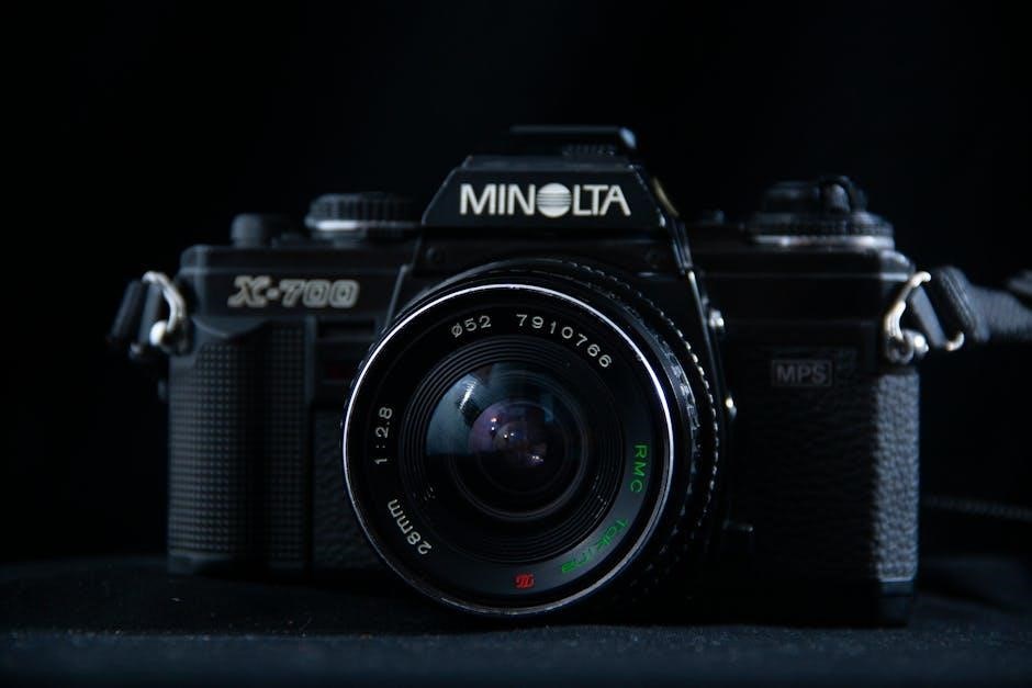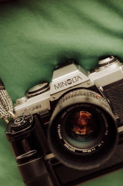 The Minolta Maxxum 7000 service manual, available online, provides detailed repair information. Complementing the user’s instruction manual, it aids advanced troubleshooting and component-level maintenance.