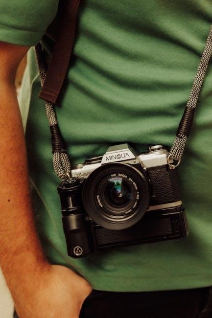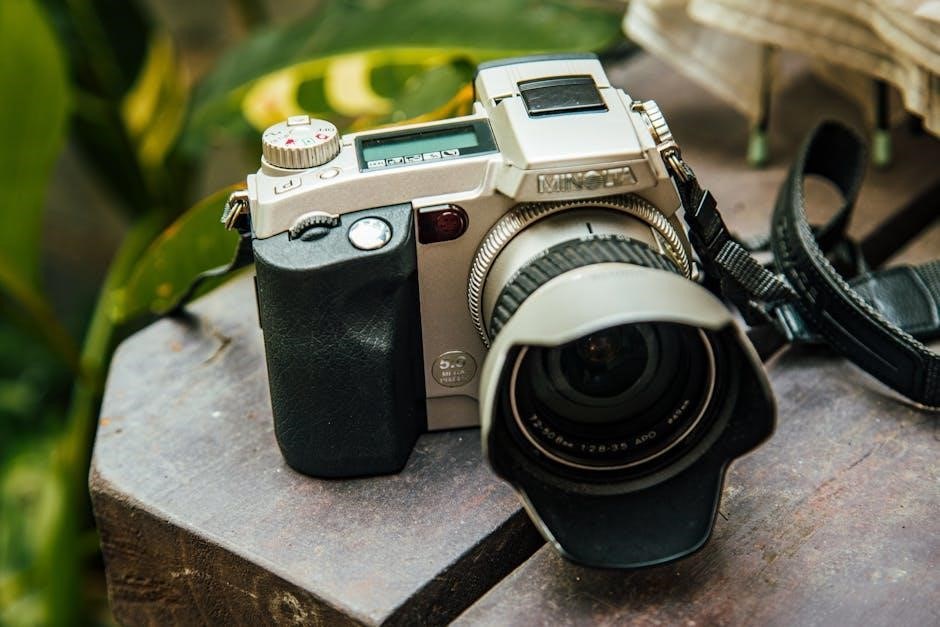 The Minolta Maxxum 7000 primarily requires 2CR5 lithium batteries for operation, as specified within the comprehensive instruction manual. Replacing these batteries is straightforward; locate the battery compartment, typically on the camera’s bottom. Ensure correct polarity during installation – positive and negative terminals must align properly. Always use high-quality batteries to guarantee reliable performance and avoid potential damage to the camera’s electronic components. Refer to the manual for detailed diagrams and safety precautions.